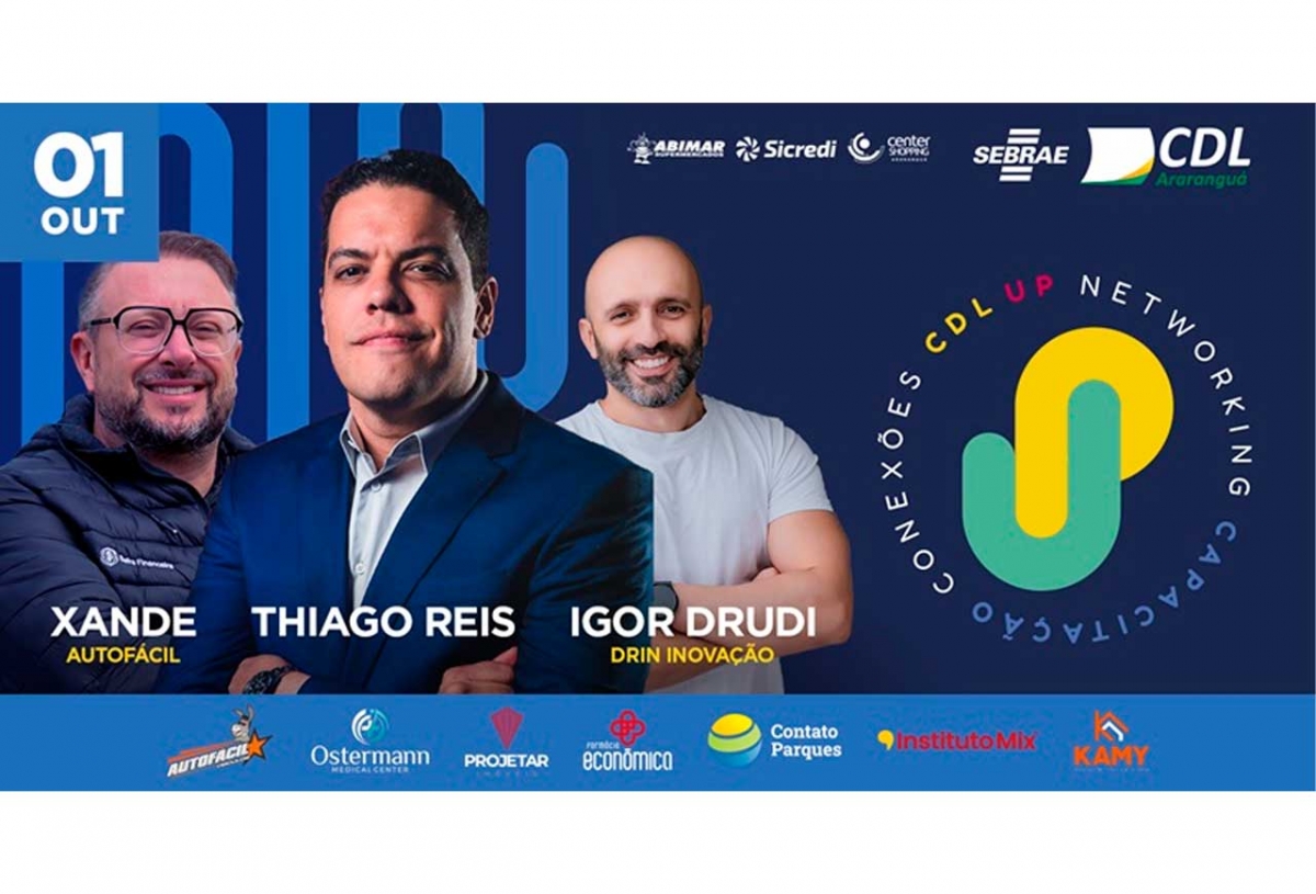 A contagem regressiva já começou: faltam apenas 9 dias para o CDL UP, um dos maiores encontros de empreendedorismo da região. O evento, promovido pela Câmara de Dirigentes Lojistas de Araranguá, acontece no dia 1º de outubro, a partir das 19h, no Contato Eco Parque, e promete uma noite de aprendizado, inspiração e conexões. Com a presença de palestrantes de renome nacional, o CDL UP vai reunir empresários, empreendedores e profissionais em busca de inovação e crescimento.