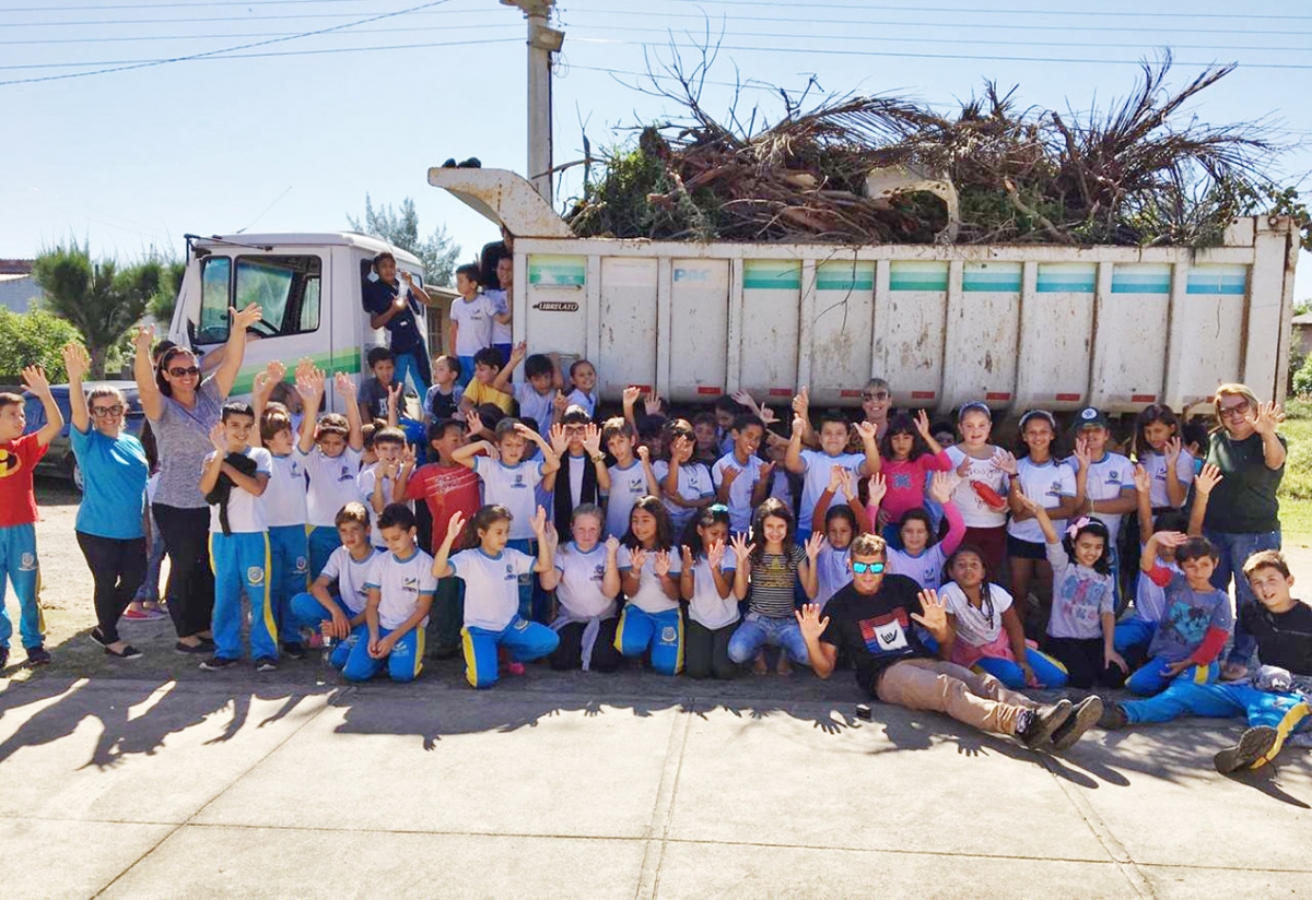 Estudantes e professores da Escola Municipal Professora Jaira Vieira Borges, da Praia da Caçamba, participaram de uma ação de conscientização ambiental em Balneário Arroio do Silva. Através de parceria entre a Secretaria Municipal de Educação e a Secretaria de Turismo, Pesca, Agricultura e Meio Ambiente, a semana começou com ações ambientais no lado sul do município.