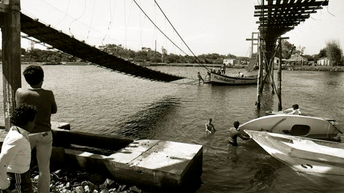 A ponte pênsil sobre o Rio Mampituba, entre Torres, no litoral norte do Rio Grande do Sul, e Passo de Torres, em Santa Catarina, virou na madrugada desta segunda-feira (20). O fato trouxe à memória a queda da ponte em 1984, quando a estrutura desabou no momento do encontro das duas comitivas das cidades interligadas.
