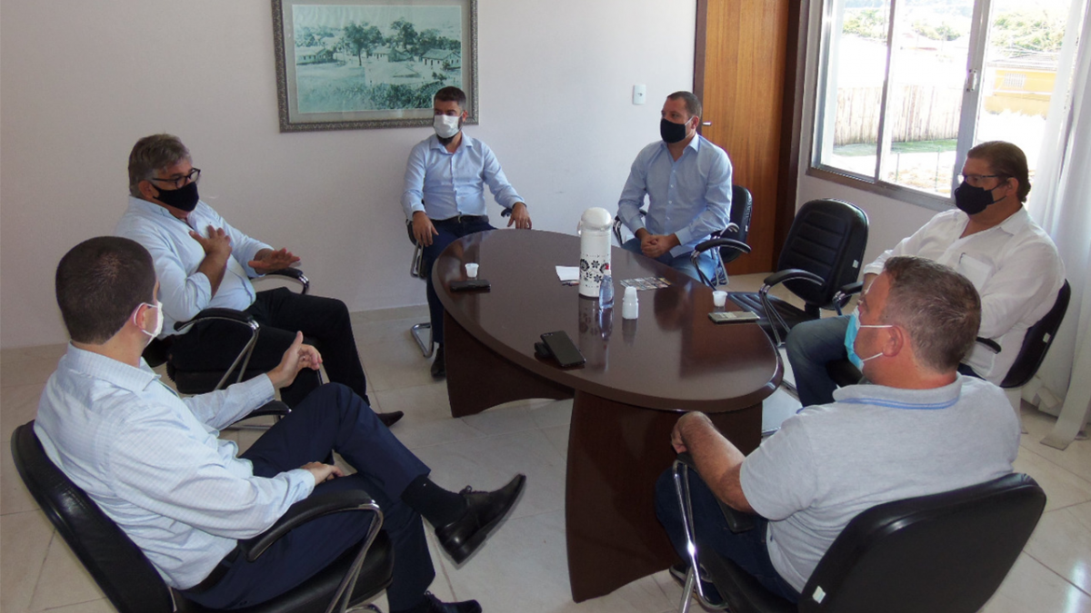 Na manhã de terça-feira, 27 de abril, o vice-prefeito de Meleiro, Pedro Luiz Schuvartz, o Secretário de Administração e Finanças, Júlio Cesar de Oliveira e o Procurador Jurídico Dr. Thiago Manfredini Zanette, receberam a visita do diretor proprietário e assessores de empresa do ramo madeireiro, com objetivo de se instalar no Parque Industrial de Sapiranga.