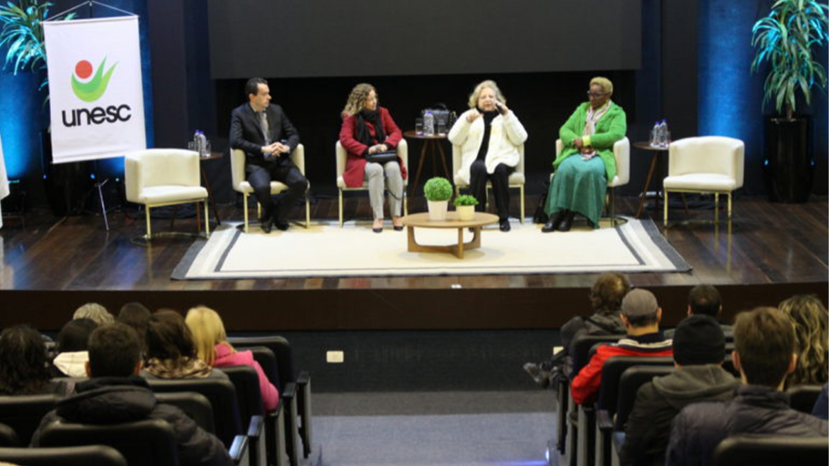 Como Universidade Comunitária, a Unesc levanta debates em torno de diversos temas, acompanhando a campanha nacional Agosto Lilás para levar a conscientização sobre a violência contra a mulher à sociedade. “É um tema pertinente para debatermos. Discutir assuntos como este é relevante para a área jurídica e para a sociedade, além de ser fundamental para promover transformações. É papel de uma instituição como a nossa, que é comunitária, trazer estas temáticas. A Salete sempre foi atuante nas causas em defesa da mulher. A ela o nosso agradecimento por estar aqui e nos permitir ouvi-la”, falou a coordenadora do curso de Direito da Unesc, Márcia Piazza.