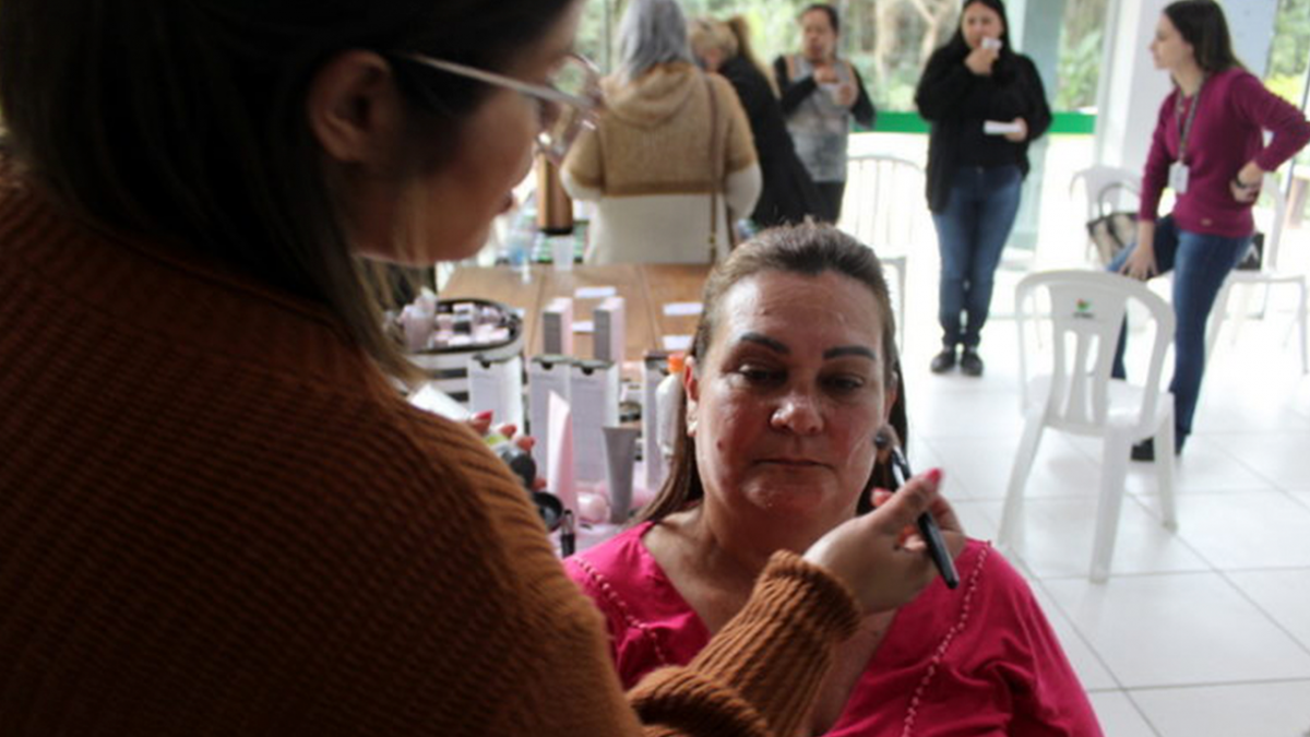 Para colocar aquela autoestima debatida no bate papo em prática, todas as mulheres ainda tiveram um momento para cuidar de si com maquiagem. “Fizemos essa dinâmica para que saiam da rotina, conversem um pouco com toda a equipe multiprofissional. A psicóloga falou sobre o assunto e como podem trabalhar os momentos de tristeza ou de tensão, sendo este uma oportunidade de conhecimento e autocuidado, especialmente para elas que, diante da doença, muitas vezes têm pensamentos negativos e até envolvendo o suicídio”, salienta a fisioterapeuta do Amasf, Kálita Silveira Nunes.
