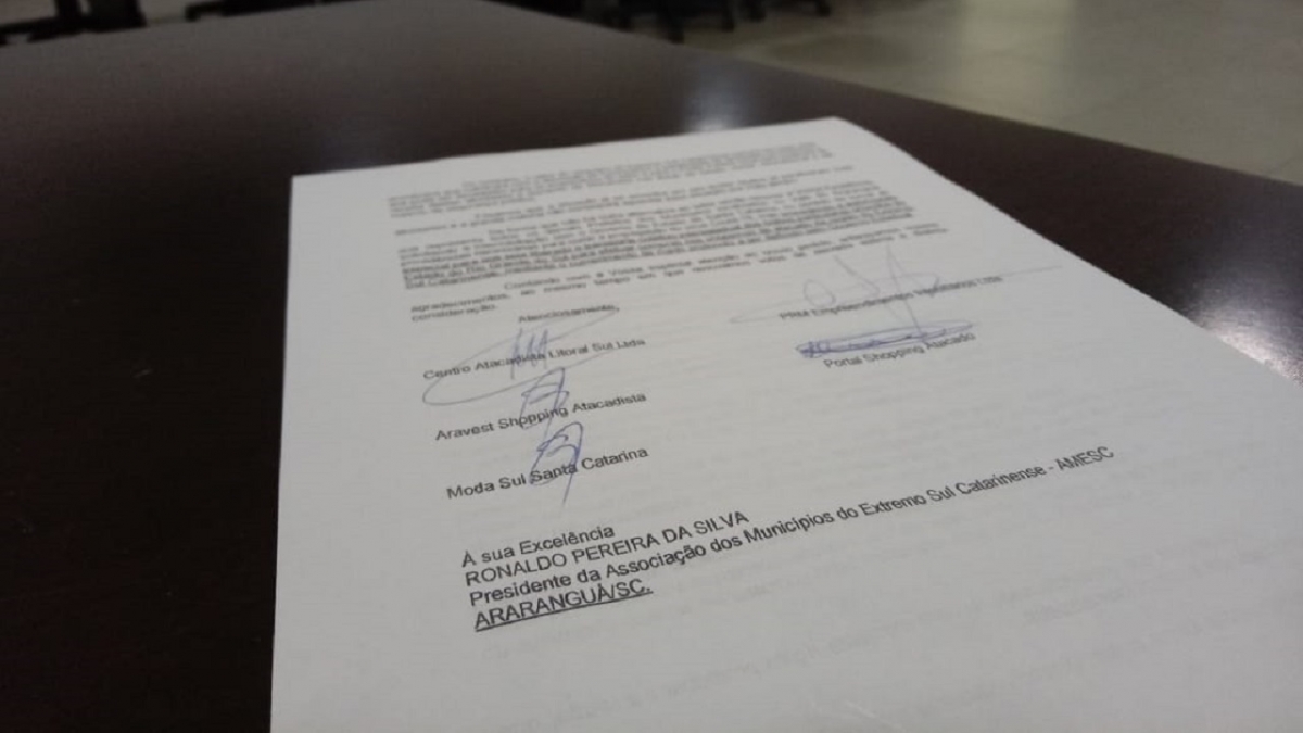 Centro Atacadista Litoral Sul ltda., Aravest Shopping Atacadista, Moda Sul Santa Catarina, PRM Empreendimentos Imobiliários e Portal Shopping Atacado recorrem a AMESC, por meio de ofício ao presidente, prefeito de Balneário Gaivota, Ronaldo Pereira da Silva, solicitando intermediação com o governo do estado.