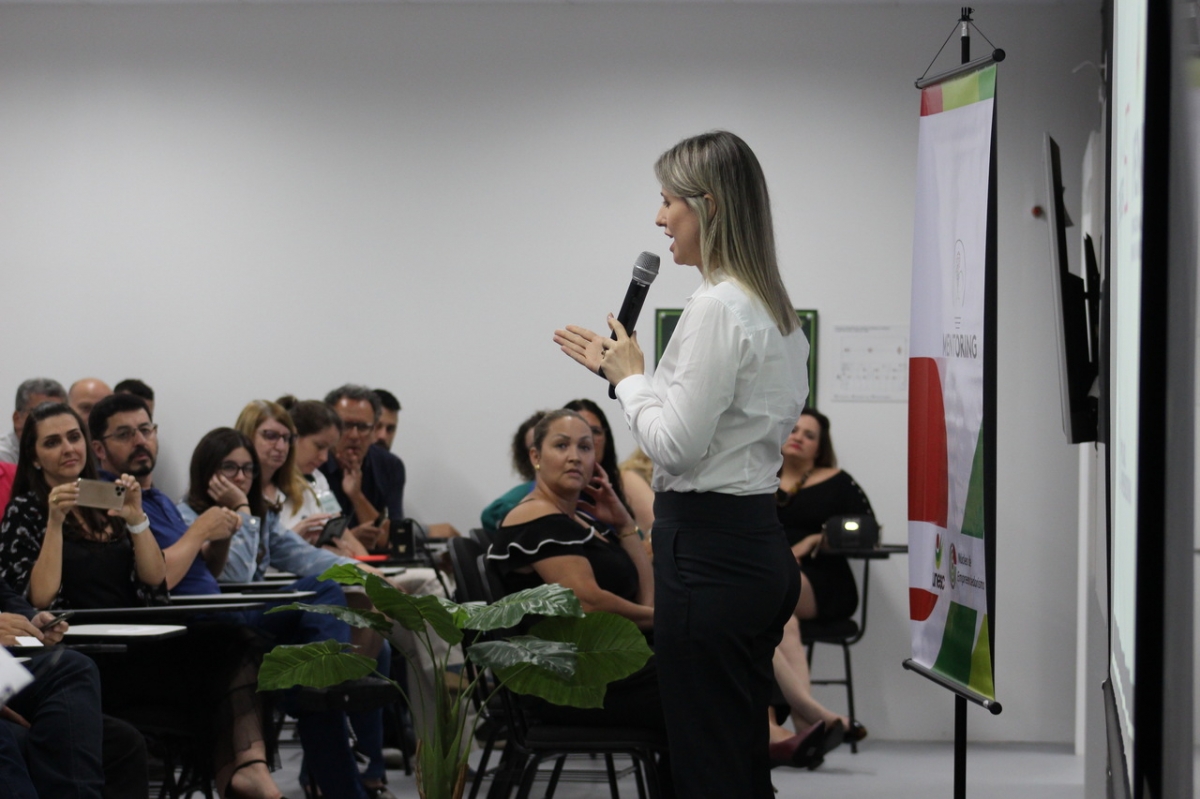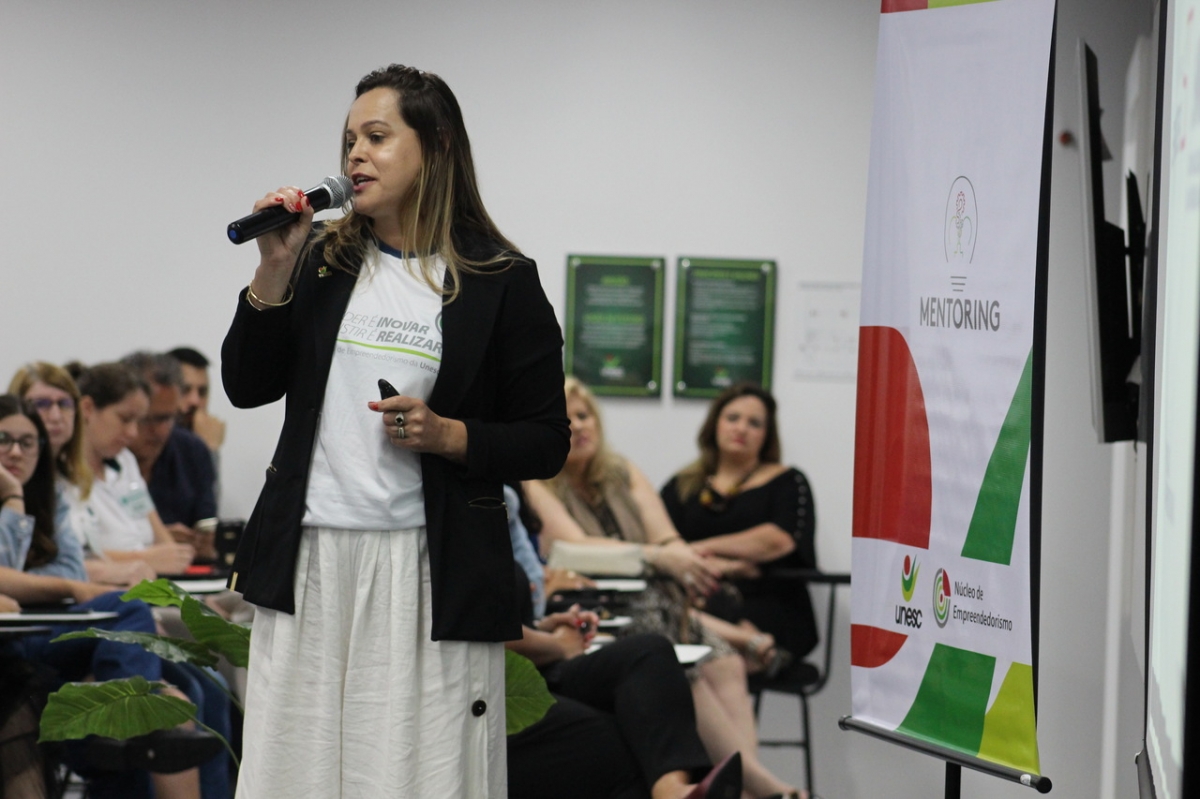 Já os detalhes do projeto principal da noite, o Mentoring, foram explanados pela criadora da ação e coordenadora do NE, Gisele Coelho Lopes. Conforme a professora, é uma honra para a Universidade oferecer mais esta oportunidade com foco na transformação de ideias em realidade. “A única coisa que lhes cobramos é o tempo de vocês, um bem tão valioso e não renovável. Hoje o tempo parece passar mais rápido e precisamos investi-lo naquilo que vale a pena de maneira assertiva, como esse programa. Ele, que foi desenvolvido para ir ao encontro das demandas da região e oportuniza o desenvolvimento de grandes ideias, traz a força de uma grande Universidade”, pontuou Gisele.