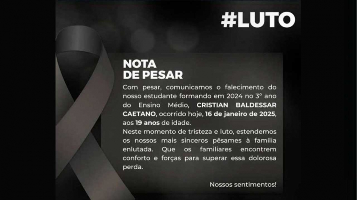A Escola Bernardino Sena Campos publicou uma nota de pesar em suas redes sociais.