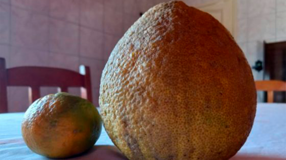 A árvore começou a dar frutos há três anos, três após ser plantada. “Nós compramos umas mudas de enxerto. Falaram que vinha um pé de laranja diferente. Nós pensamos que era uma laranja especial”, conta Zulma, que vive no local há 27 anos. “É bem grande. Dá laranja até de um quilo. Não são todas iguais. Tem maiores, menores. Quem vê fica impressionado com o tamanho e como que o galho aguenta”, fala.