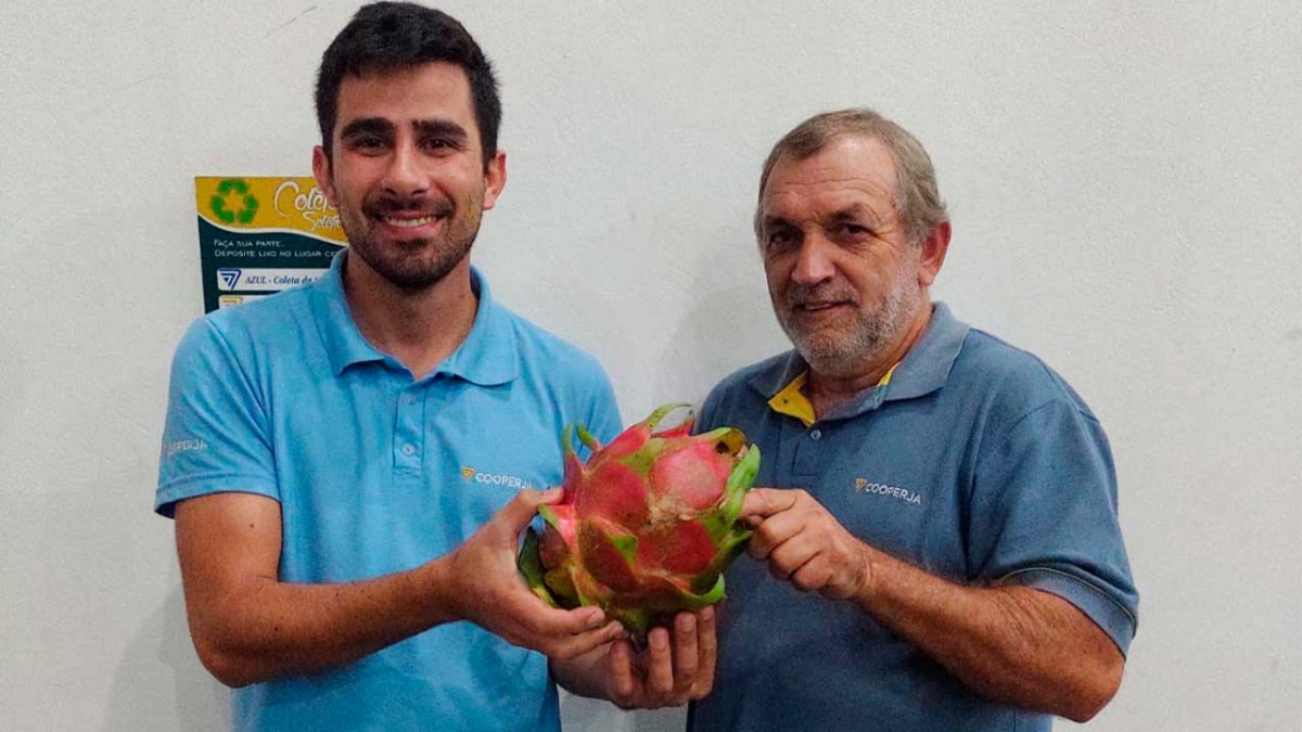 O associado da Cooperja, Domingos Casagrande, residente da comunidade de Sanga da Curva, deixou todos maravilhados ao colher uma pitaya gigante, pesando impressionantes 2,365 kg.