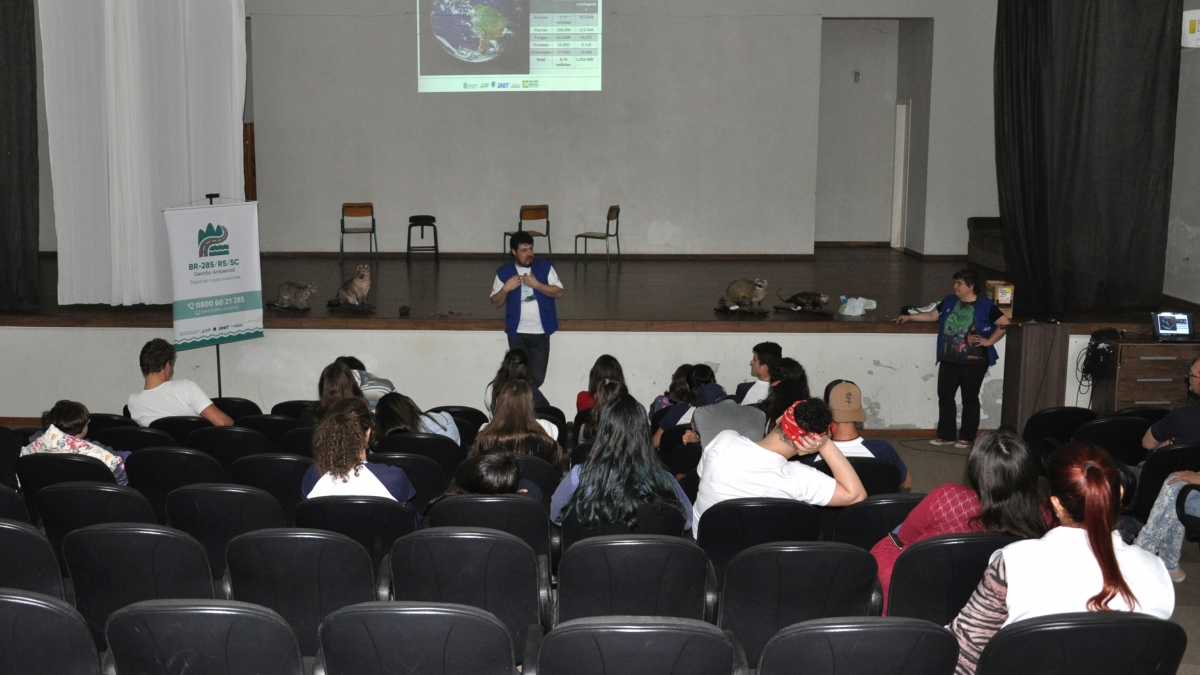 A equipe do Programa de Educação Ambiental partiu da caracterização da Mata Atlântica, bioma que se estende por grande parte da costa brasileira e abriga ampla biodiversidade de espécies. Ao mesmo tempo, lembrou o educador ambiental Cauê Canabarro, é um dos ecossistemas que mais sofre com a degradação devido aos ciclos econômicos da história do país. Foram então abordadas as políticas públicas que visam conservar esses ambientes e mencionadas algumas das medidas mitigatórias executadas nas obras da BR-285/RS/SC. Para enfatizar os cuidados com animais silvestres, foi exibida a reportagem em vídeo produzida a partir de imagens de armadilhas fotográficas instaladas nas passagens de fauna.