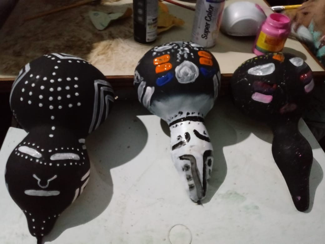 “A oficina de Máscaras Africanas tem por objetivo informar sobre a importância deste artefato no Continente Africano. A confecção foi elaborada em porongos por ser o que mais se aproxima da realidade africana. E no final da confecção as pessoas levam o souvenir pra casa”. Já em relação as bonecas Abayomi, tornaram-se o símbolo de resistência feminina africana. “A oficina das Bonecas Africanas tem por objetivo desmistificar o senso comum. Fazendo com que as pessoas saibam a história sobre a Abayomi e contem para outras pessoas tornando-se multiplicadores desse conhecimento. Após a historicidade as pessoas aprendem a fazer a bonequinha, confeccionadas só com amarrações e ainda a levam para casa”.