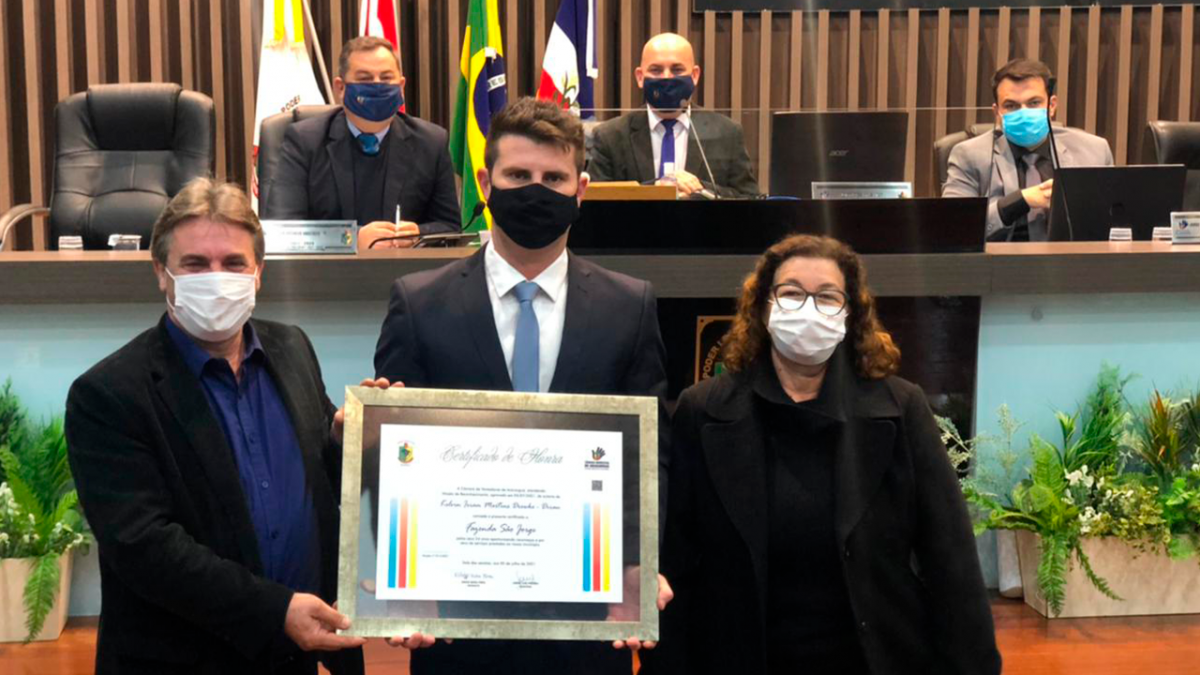 Na noite desta segunda-feira (05) o vereador Kelvin Diran, do Progressistas, aprovou junto da Câmara de Vereadores de Araranguá uma moção de reconhecimento para a Fazenda São Jorge pela passagem dos seus 24 anos de instalação. A Fazenda São Jorge foi fundada em 1997, com o objetivo de recuperar jovens dependentes químicos, exatamente por dois jovens, Hilson Sasso e Joênio Pires, que após várias tentativas de se livrarem da dependência, passando por clínicas e hospitais, alcançaram suas recuperações em uma comunidade terapêutica.
