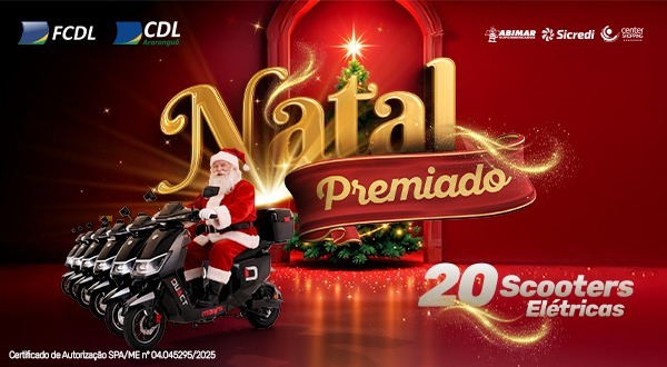 A CDL Araranguá lança a campanha mais esperada do ano: o Natal Premiado, que promete movimentar o comércio e premiar consumidores com 20 scooters elétricas. É a chance de começar 2026 com um novo meio de transporte, moderno, econômico e sustentável, simplesmente fazendo suas compras no comércio da cidade.