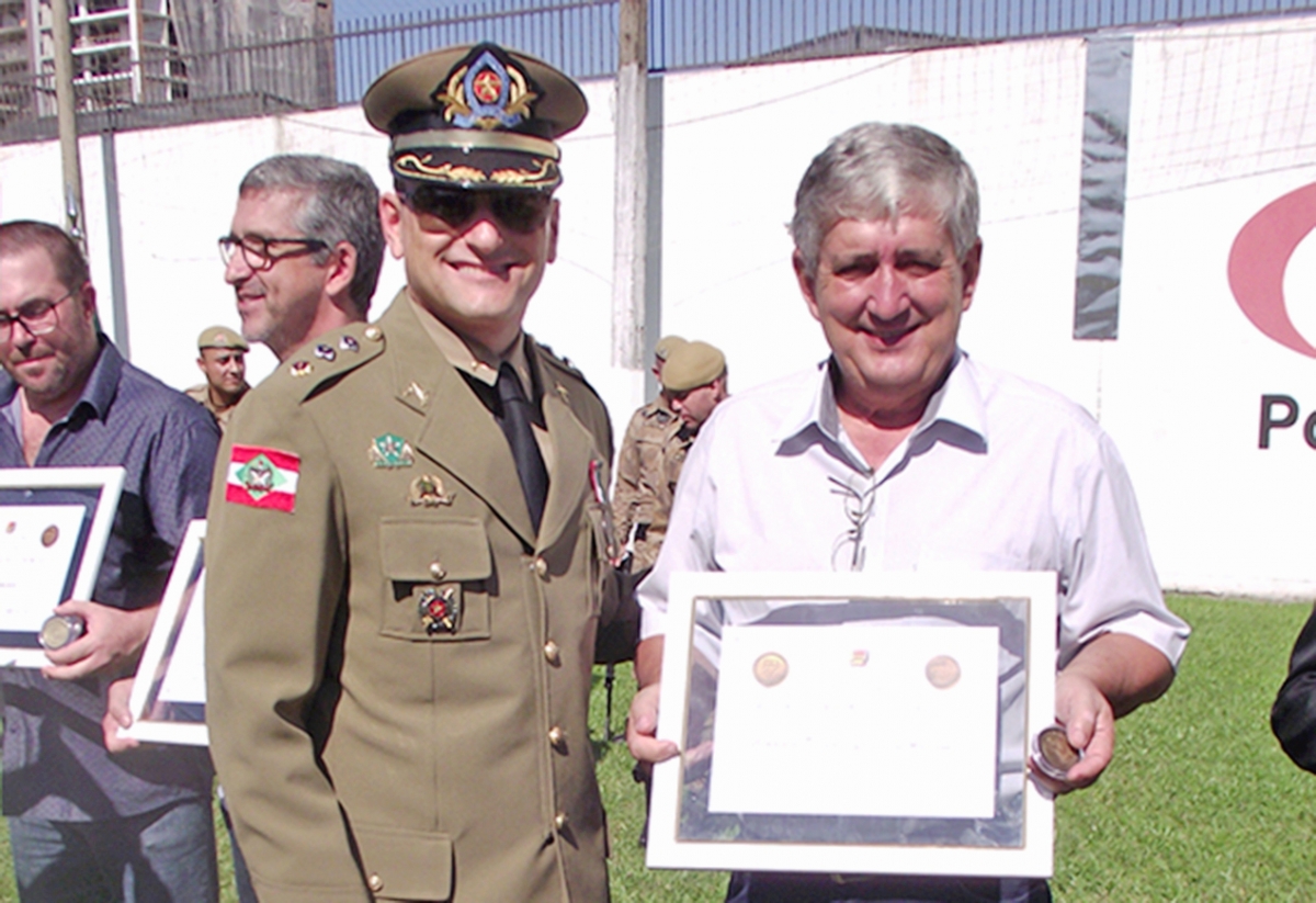 O 19º Batalhão da Polícia Militar (BPM) de Santa Catarina realizou, na manhã de sexta-feira (03) em sua sede em Araranguá, a entrega da Moeda “O Guardião do Extremo Sul” a oito pessoas jurídicas, entre empresas, clubes de serviço, órgãos municipais e entidades. A Câmara de Dirigentes Lojistas (CDL) de Araranguá também recebeu a homenagem, que foi entregue ao seu presidente, Luiz Gonzaga Pereira, na ocasião acompanhado da vice-presidente, Dalva Maria Machado Leme. O evento contou ainda com a presença de autoridades, policiais militares, familiares e amigos dos homenageados.