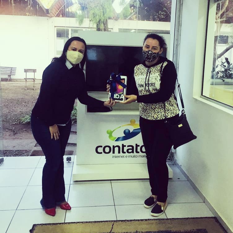 A vencedora de julho foi Cristiane Silva dos Santos, de Araranguá, que ganhou um tablet da marca Samsung entregue pela supervisora comercial da empresa, Aline Cardoso.