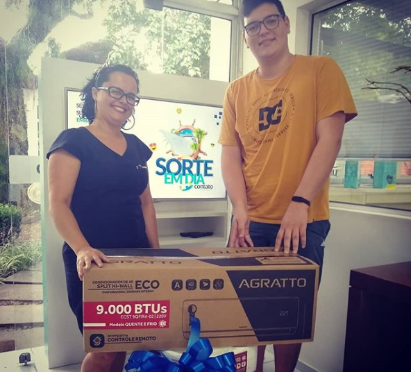 Já em fevereiro, o sortudo foi Denilson D'Avila, que ganhou um ar-condicionado; e em janeiro, a premiação foi um kit praia, que saiu para o cliente Wilker Maciel e foi retirado por sua esposa, Francine Tomaz, e entregue pela gerente do setor financeiro, Jaira Mateus Feliciano.