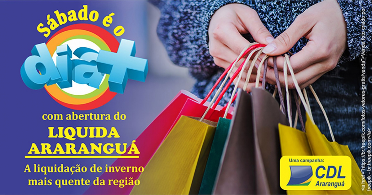 No próximo sábado (03) acontece o tradicional Dia+, data em que as lojas associadas à Câmara de Dirigentes Lojistas (CDL) de Araranguá permanecem com suas portas abertas até as 17h. A novidade é que o mesmo dia marca também o início do Liquida Araranguá, evento que segue até o sábado seguinte (10/08).