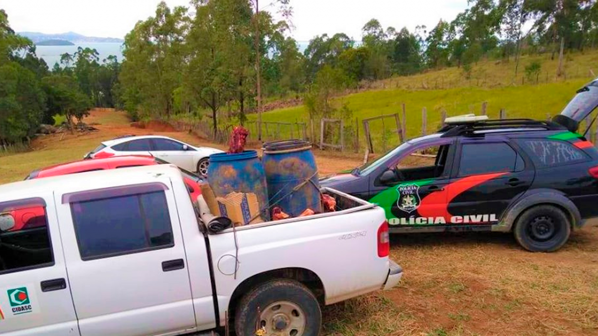 A Polícia Civil do Estado de Santa Catarina, por intermédio das delegacias de Pescaria Brava, Jaguaruna e Laguna, com o apoio do PPT de Tubarão, estourou um abatedouro irregular de animais, situado no Sítio Novo, em Imaruí. Dois homens foram presos em flagrante.