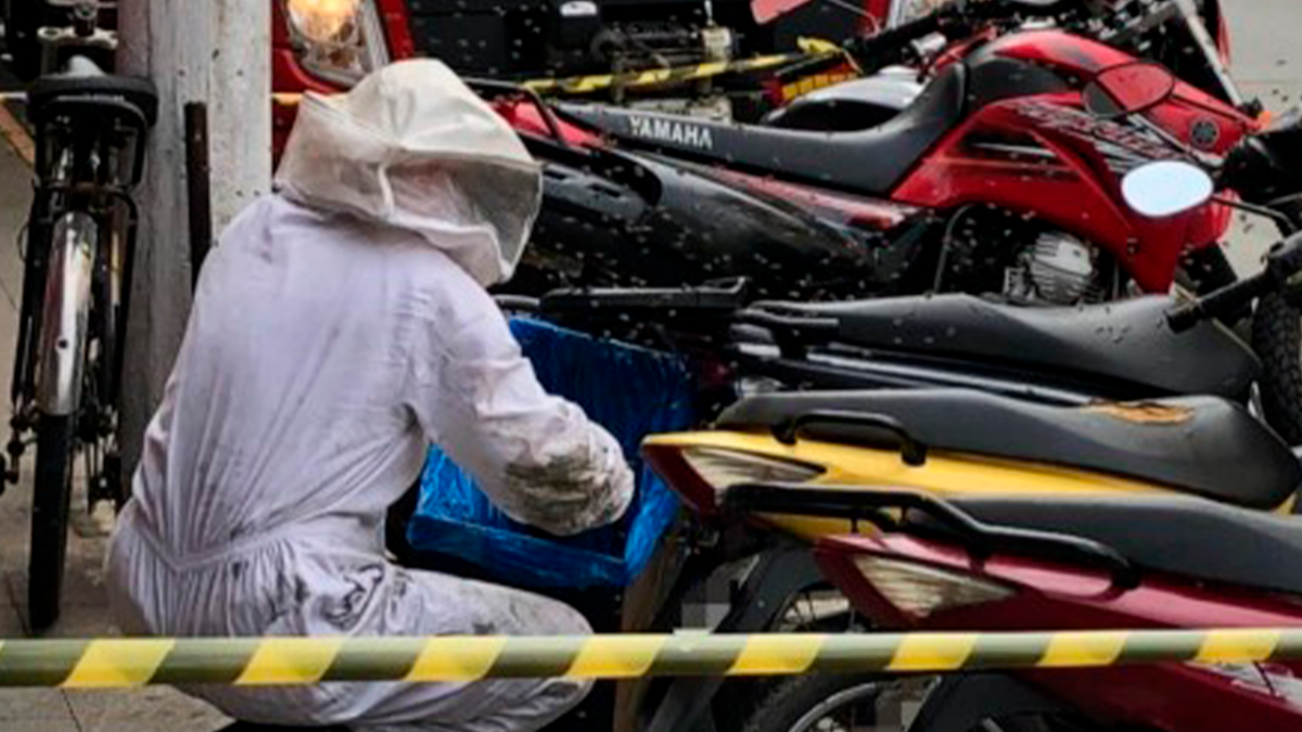 Na manhã desta terça-feira, dia 15, o Corpo de Bombeiros Militar de Tubarão foi acionado por conta de um enxame de abelhas que se alojou na placa de uma moto Honda Biz. Por volta das 10 horas, a equipe foi até o local e fez a captura dos insetos. O fato ocorreu na Avenida Marcolino Martins Cabral, no Centro de Tubarão.