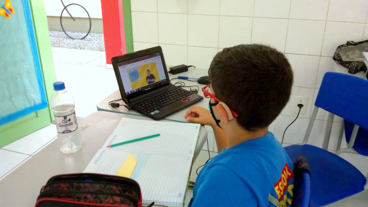 Unidade possui 22 alunos surdos. O novo momento está sendo um desafio, já que os estudantes exploram muito de recursos visuais.