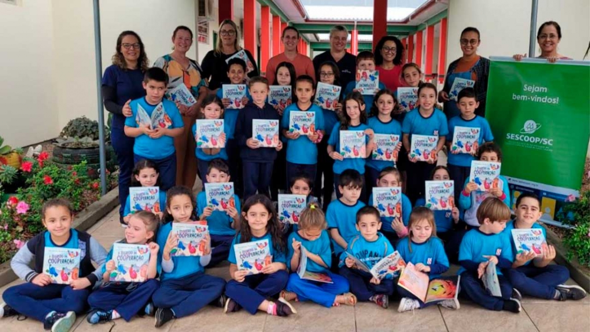 O Sescoop/SC adquiriu o livro “O segredo da Cooperação” e proporcionou que as cooperativas parceiras do Programa Jovens Cooperativistas Catarinense Games, fizessem as entregas nas escolas beneficiadas com o programa.