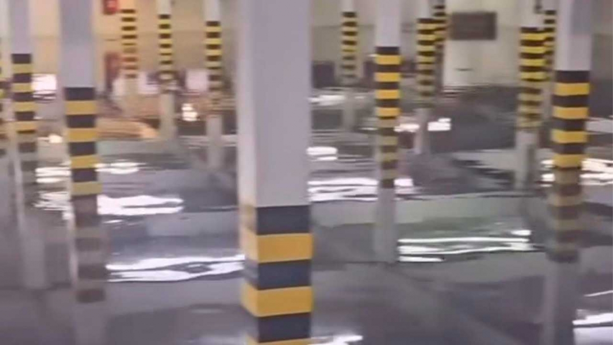 Após fortes chuvas, neste sábado, 15, um supermercado em Sombrio teve parte do seu estacionamento tomado pela água.Imagens: Gaivota em Foco