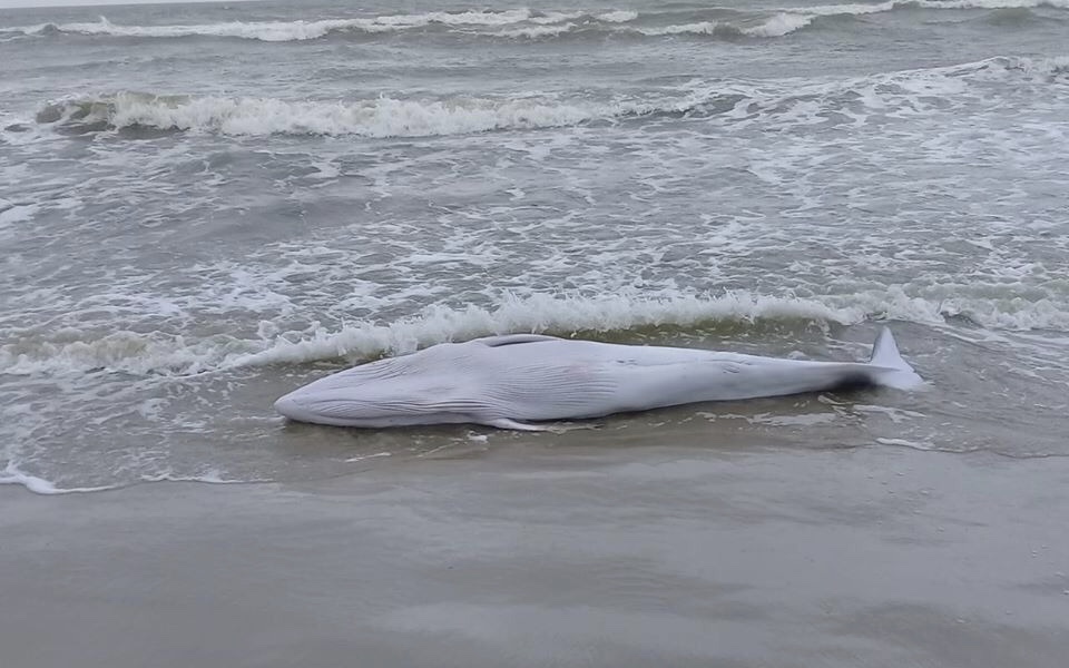 Um filhote de baleia-franca encalhou na Praia da Lagoinha, zona sul de Balneário Arroio do Silva.