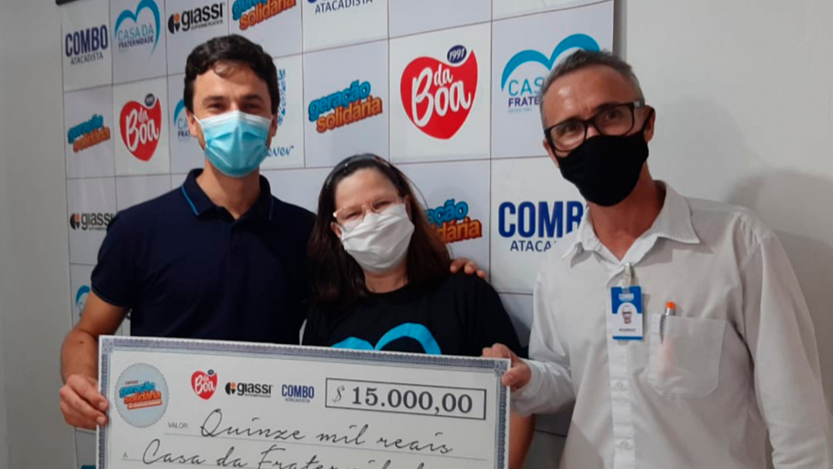 Com um incremento de 31% das vendas dos produtos das Massas da Boa, a MDB Indústria Alimentícia, e a Rede Giassi, repassarão R$ 15 mil para a Casa da Fraternidade, através do projeto Geração Solidária de março. Para abril, as vendas serão de produtos OMO e de produtos com a marca Giassi, em todos os supermercados da rede Giassi.
