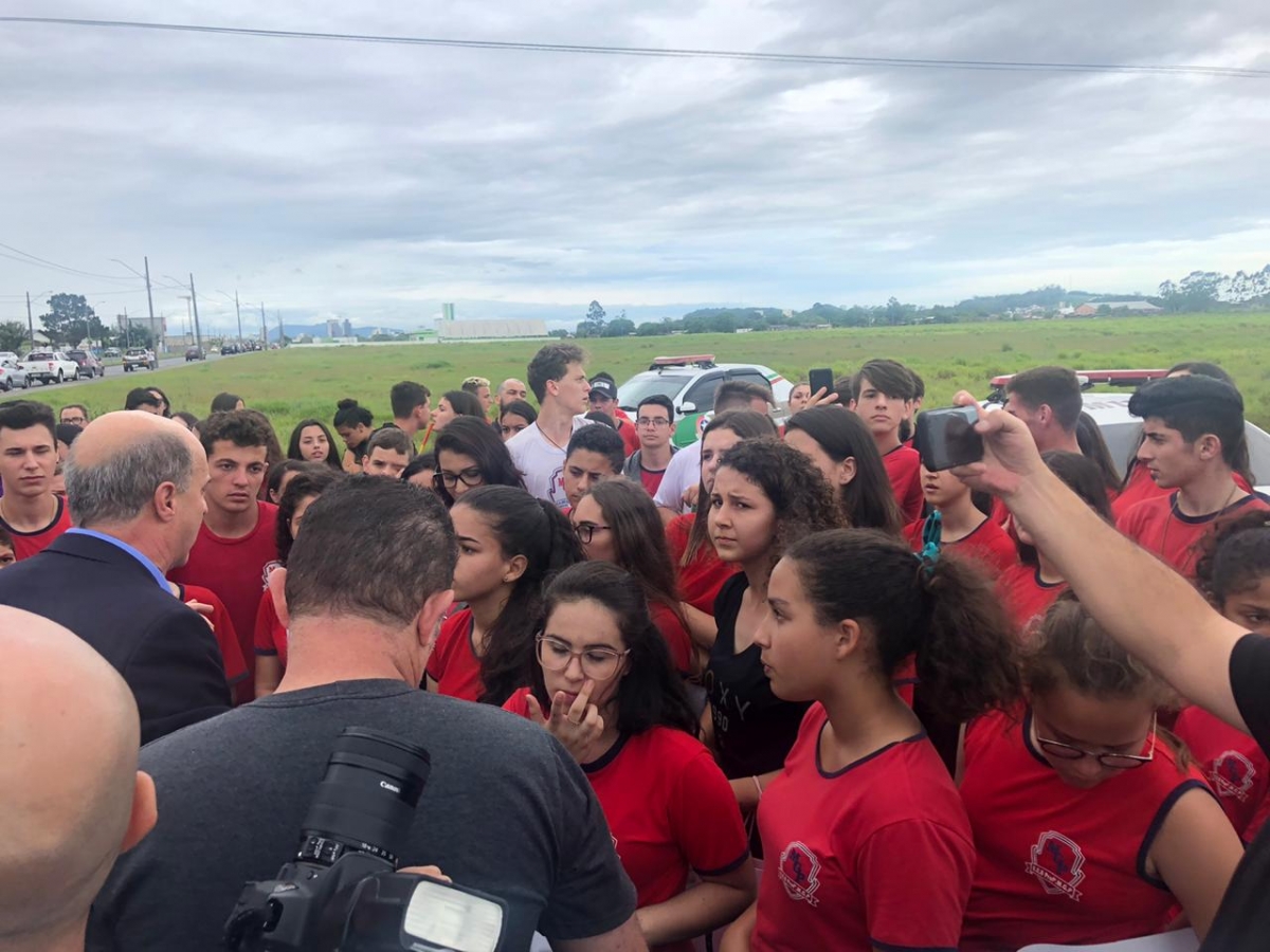 Durante toda a fala os estudantes permaneceram na parte externa da sede da Amesc. Ao fim de sua fala, o governador de Santa Catarina deu espaço para que a diretora da escola, Sandra Vargas entregasse um oficio de solicitação.