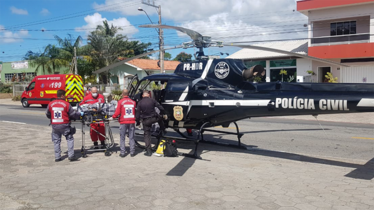 Paciente foi medicado e estabilizado após procedimentos pela equipe SARASUL e transportado com a aeronave até o hospital referência em trauma em Tubarão , HNSC. Durante o atendimento contamos com apoio solo da Unidade de Suporte Avançado/SAMU.