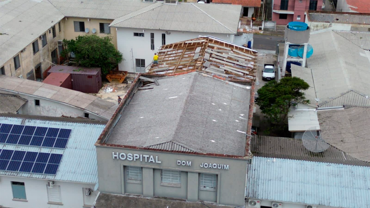 O temporal que assolou o município de Sombrio e região na madrugada do dia 18 de novembro comprometeu todos os setores do Hospital Dom Joaquim, devido à queda do telhado da unidade. Durante o final de semana, todos os pacientes foram transferidos para hospitais próximos e as cirurgias foram canceladas. Além disso, um mutirão de colaboradores realizou a primeira limpeza e as pequenas manutenções com o intuito de tentar recuperar documentos, computadores, equipamentos e móveis.