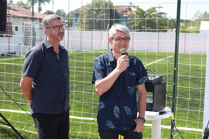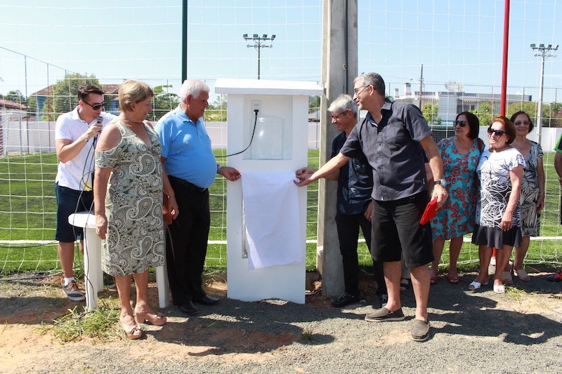 O campo de grama sintética fica localizado ao lado do Salão Oscar Bertoncini e conta com uma estrutura nova e moderna. Ao todo, a obra recebeu investimento de R$ 200 mil e ainda contará com a entrega de um quiosque duplo e estacionamento para até 90 carros. Vado ainda lembra que o clube também fez um novo quiosque anexo a quadra de vôlei e fez uma nova quadra de areia para a prática do beach tênis.