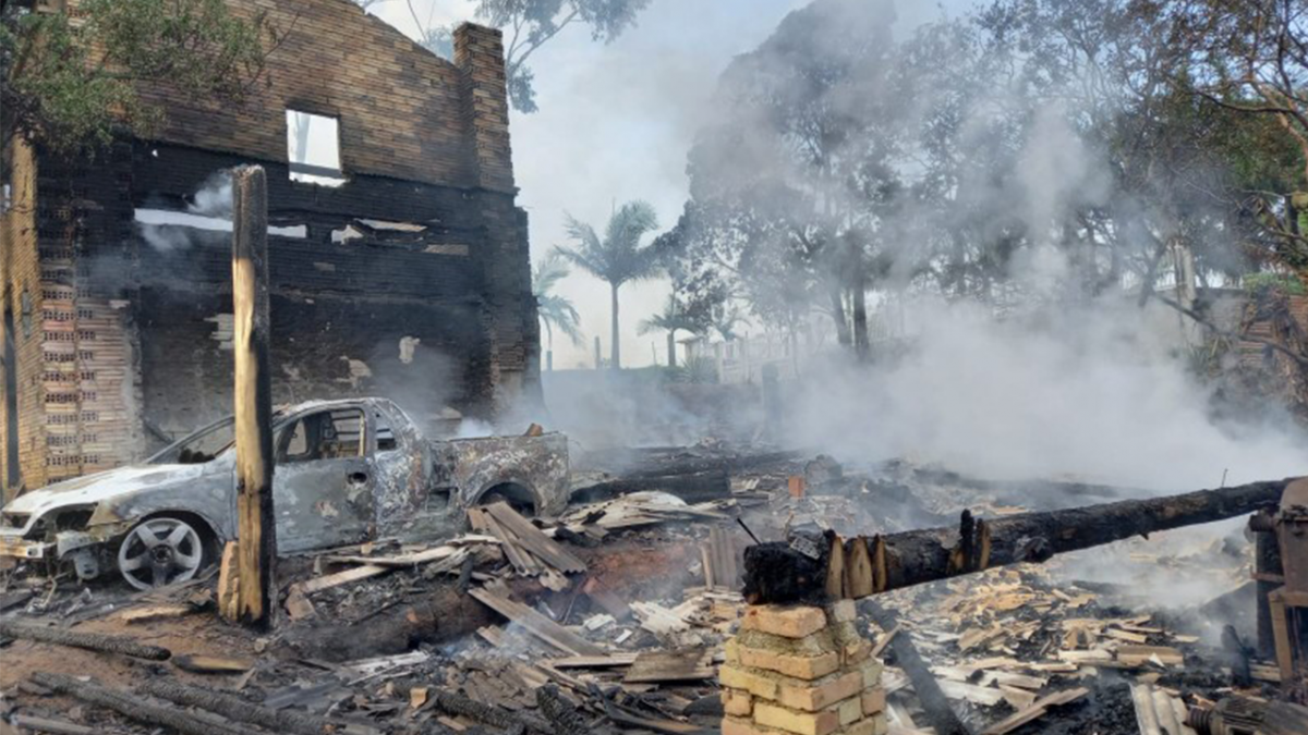 Quando os militares chegaram no local da ocorrência, o fogo já havia tomado todos os bens danificados. Boa parte da estrutura também havia colapsado.