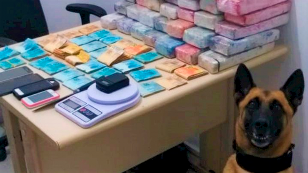 Posteriormente, em diligencias, foram encontrados em uma residência, no bairro Mar Grosso, mais de R$ 29 mil em dinheiro, 31,2 quilos de maconha, 100 g cocaína, aparelhos celulares, balança de precisão, cartões de crédito e talões de cheque.
