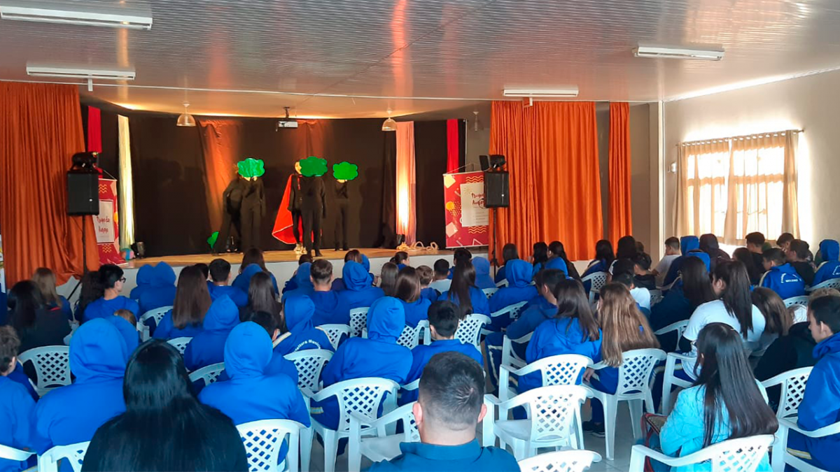 O grupo teatral @trupedaaurora apresenta neste primeiro dia a peça: "Precisamos falar sobre o mal". As apresentações acontecem no auditório Pedro Paulo Mezari da EEBM Inês Tonelli Napole.