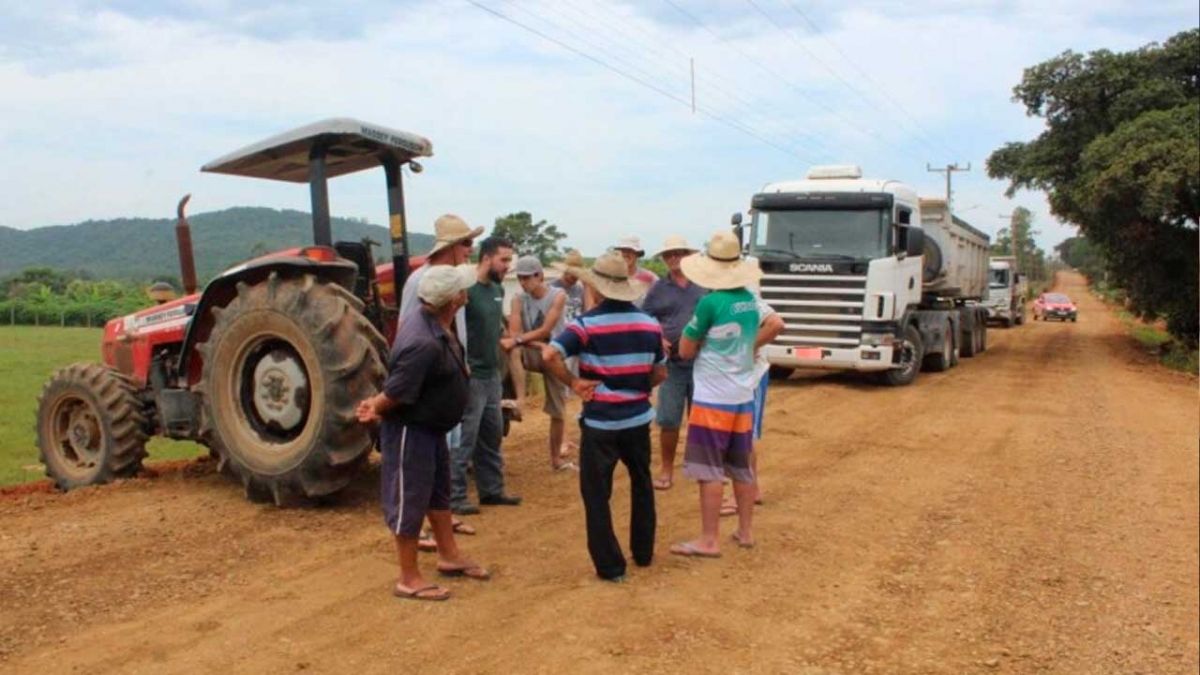 Moradores da localidade de Encruzo do Barro Vermelho, zona rural de Maracajá nos limites com Araranguá, impediram o fluxo de caminhões com carga pesada na rodovia Alcino de Freitas, que dá acesso à BR-101, e que está em obras para receber pavimentação asfáltica.