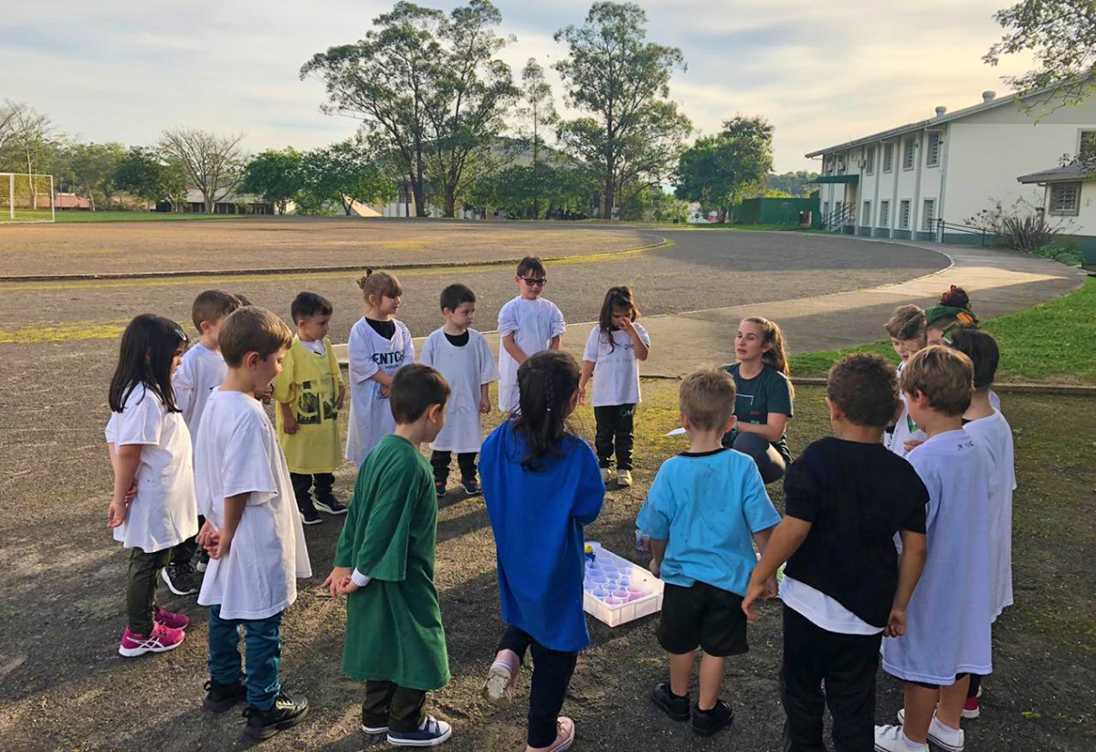 Na infância, utiliza-se o lúdico para fazer os pequenos interagirem entre si e com o mundo ao redor. A brincadeira livre é quando os alunos têm a liberdade de explorar o ambiente como desejam. “Ali as crianças desenvolvem os sentidos, aprendem sobre preservação da natureza e exploram a criatividade. Um graveto pode se tornar uma lupa ou uma varinha mágica para eles”, destaca a professora da educação infantil, Giovana Pagani Daleffe.