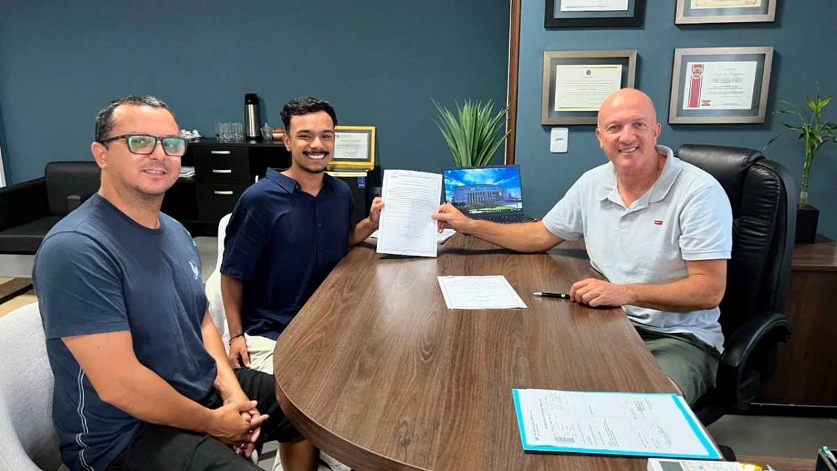 O ato de entrega de serviço foi realizado no gabinete do prefeito Evandro Scaini junto ao vereador Alan da Silva para o responsável pela Construtora.