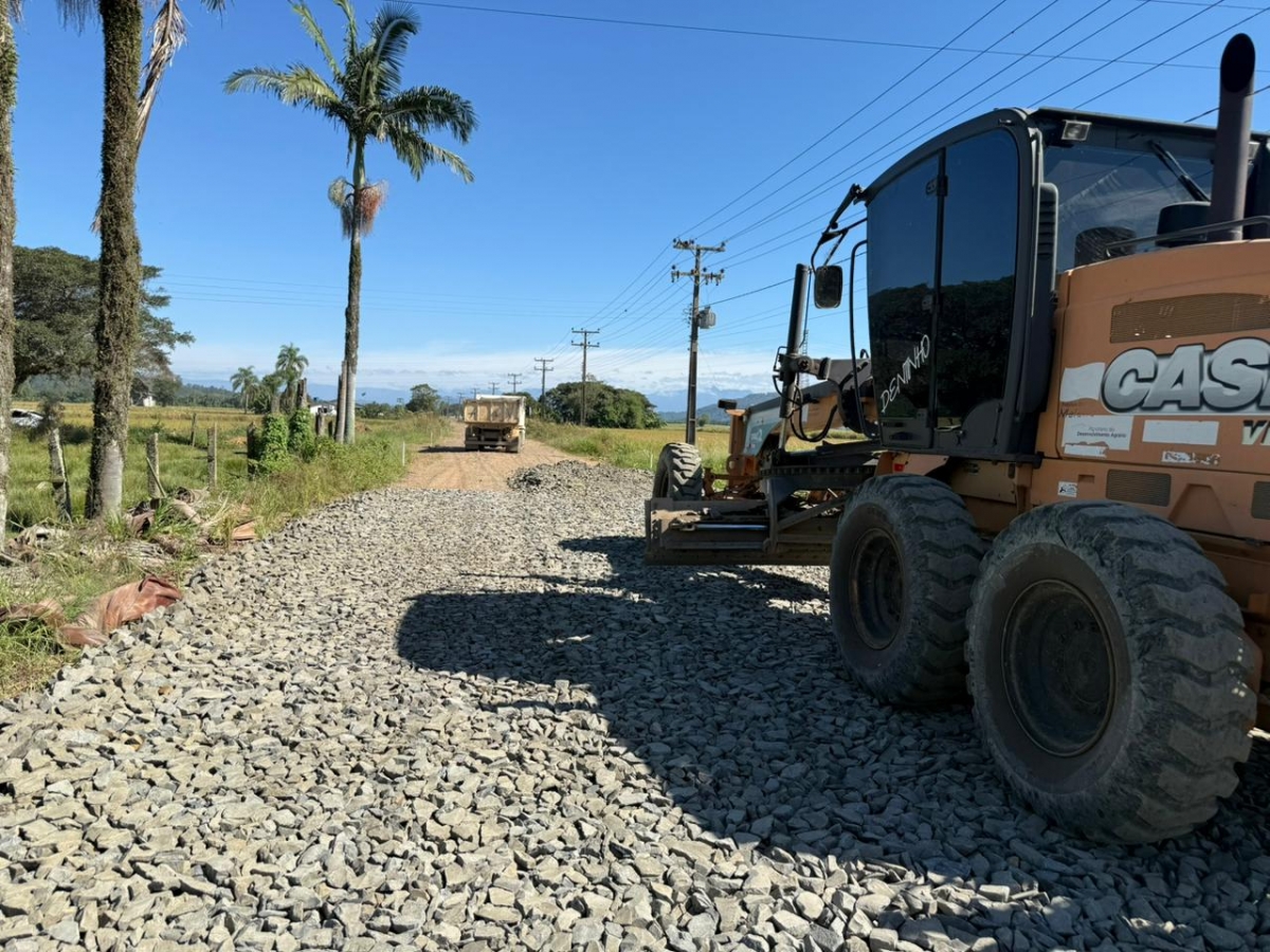 A obra de pavimentação na localidade de Boca do Pique, realizada por meio do programa Estrada Boa Rural, do Governo de Santa Catarina, segue avançando conforme o cronograma estabelecido pela Prefeitura de Araranguá.