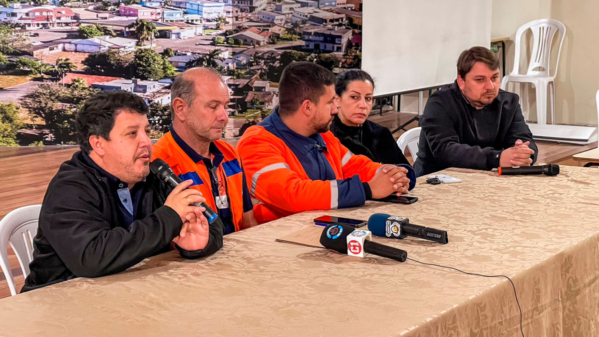A coletiva contou ainda com a presença do vice-prefeito Rodrigo Mariani, da secretária de Assistência Social Tatiani Homem, do Presidente do Colegiado de Coordenadores da Defesa Civil da Amesc, Higor Pereira e imprensa local.