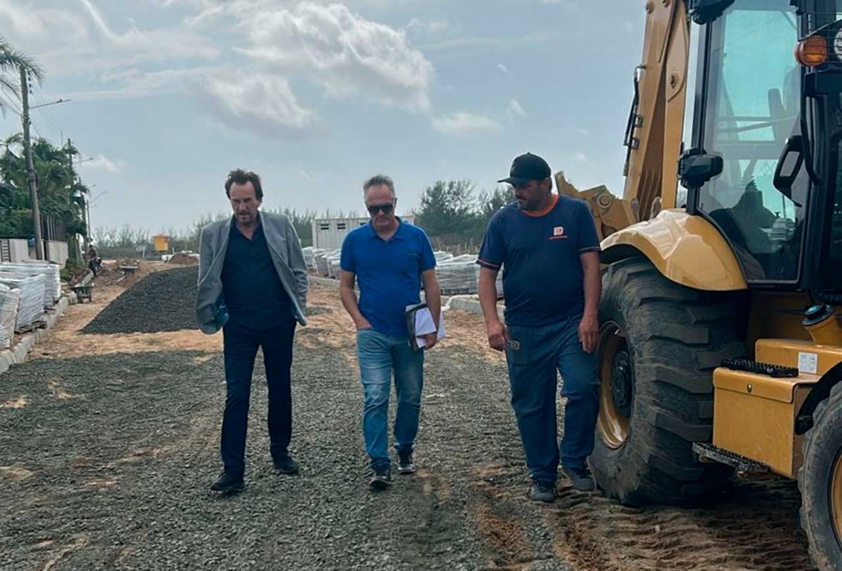 O prefeito de Araranguá, Cesar Cesa, acompanhado do engenheiro Márcio Daniel, realizou na manhã desta quinta-feira, dia 4, uma vistoria técnica nas obras de pavimentação da rua Beira-Rio, localizada em Ilhas.