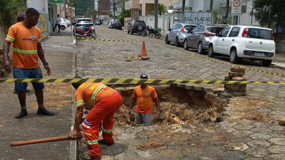 Conserto de tubulação na rua Caetano Lummertz."