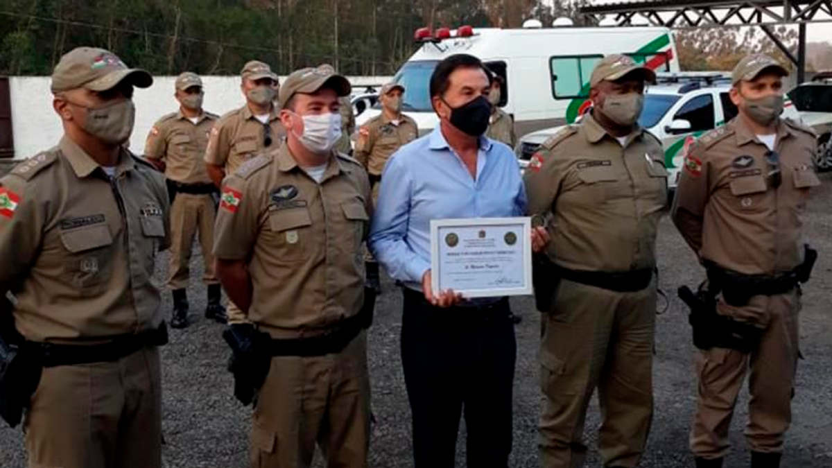 Em solenidade realizada na última quinta-feira (27), a Polícia Militar de Santa Catarina prestou homenagem ao Presidente do Sicoob Credisulca, Sr. Romanim Dagostin, com a medalha “O Guardião do Extremo Sul”. A cerimônia aconteceu em comemoração aos 11 anos de criação da 3ª Companhia do 19º Batalhão de Polícia Militar em Turvo, que também abrange as cidades de Meleiro, Timbé do Sul, Morro Grande, Ermo e Jacinto Machado.