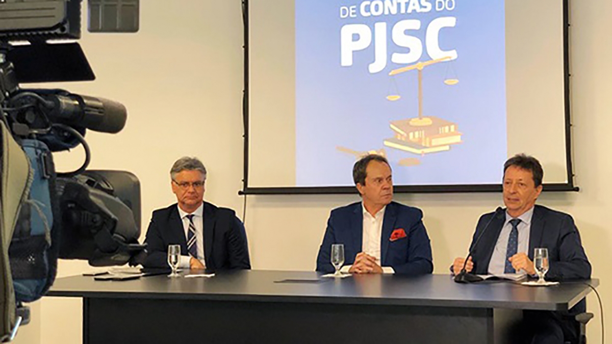 As principais realizações do Poder Judiciário catarinense nos últimos dois anos foram compartilhadas nesta terça-feira (17/12) com profissionais da comunicação de diversos veículos do Estado. O presidente do Tribunal de Justiça de Santa Catarina (TJSC), desembargador Rodrigo Collaço, atendeu os jornalistas na sede da Associação Catarinense de Imprensa (ACI), em Florianópolis, para o "Dia Estadual de Prestação de Contas". Também participaram da entrevista coletiva o presidente da ACI, Ademir Arnon de Oliveira, e o presidente eleito do TJSC, desembargador Ricardo Roesler.