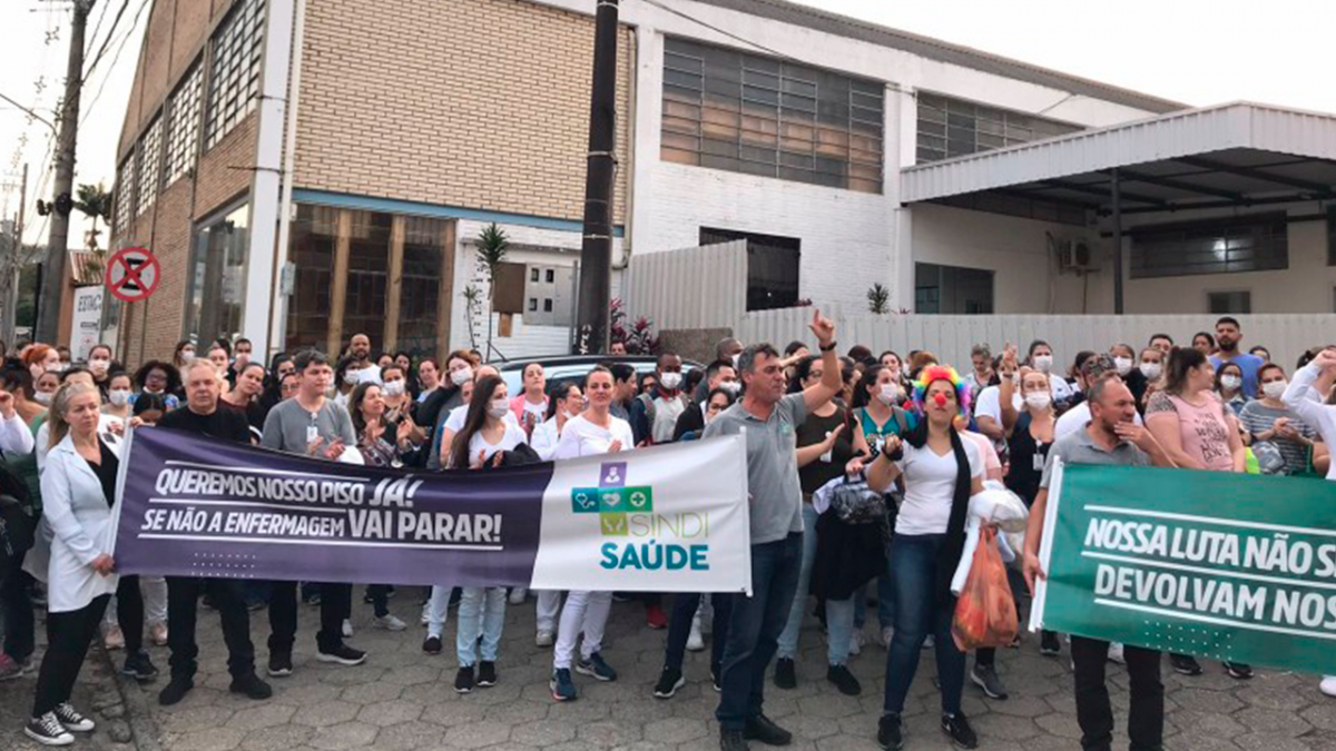 O Sindicato dos Trabalhadores em Estabelecimentos de Serviços de Saúde de Criciúma e Região (Sindisaúde) realizou na manhã desta sexta-feira, dia 9, em frente ao Hospital São José, em Criciúma, uma paralisação com profissionais de enfermagem para tratar sobre a decisão do ministro do Supremo Tribunal Federal (STF) Luís Roberto Barroso, que suspendeu a aplicação do piso salarial nacional da enfermagem.