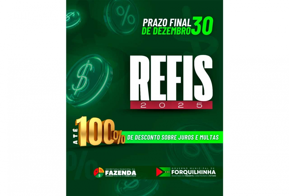 O Governo Municipal de Forquilhinha lançou nesta semana o Programa de Recuperação Fiscal – REFIS 2025, que oferece aos contribuintes a oportunidade de regularizar débitos em atraso com o município. A iniciativa prevê condições especiais de pagamento, incluindo desconto de até 100% sobre juros e multas, dependendo da modalidade escolhida.