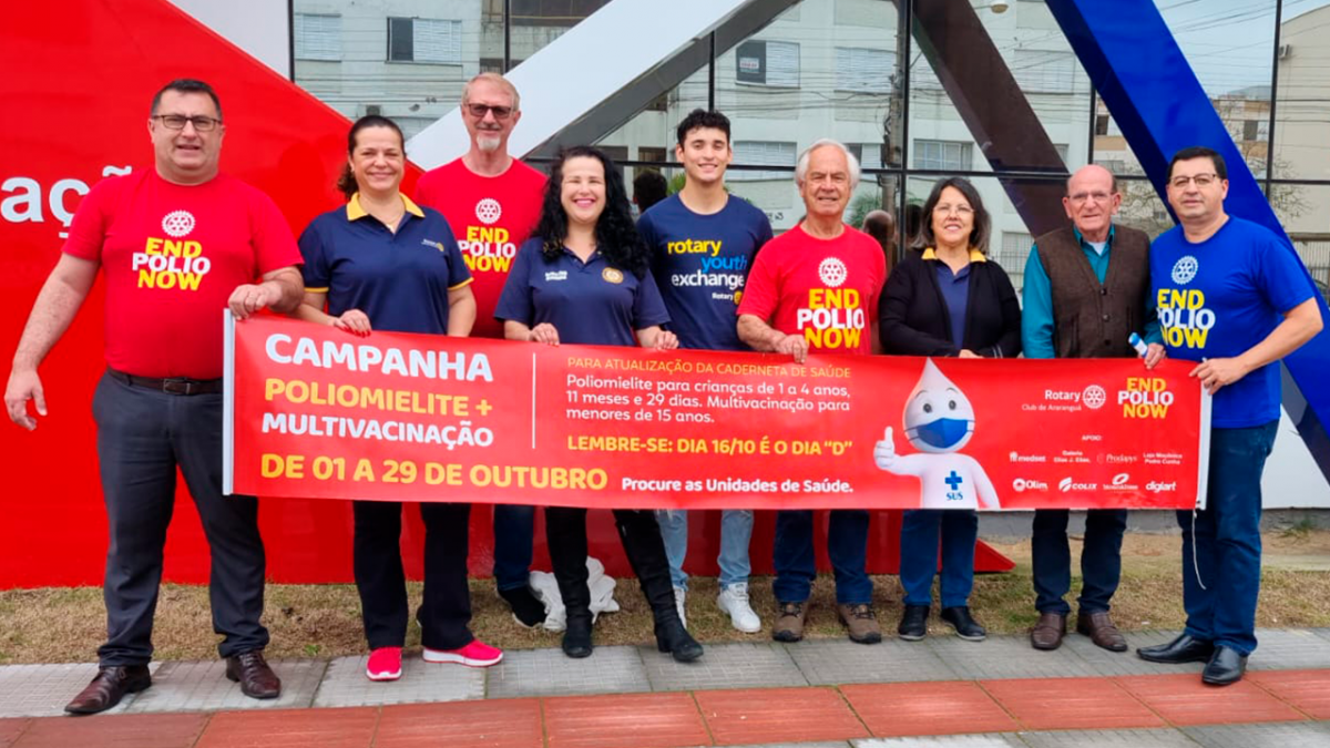 Outubro é um mês importante para todos os rotarianos, afinal de contas, é quando se intensifica a campanha de vacinação contra a poliomielite - doença erradicada no Brasil desde 1989, mas que teve queda na cobertura vacinal nos últimos anos. Por isso, os voluntários do Rotary Club Araranguá chamam a atenção da comunidade local para o chamado “Dia D” que acontece no próximo sábado, 21, quando as unidades de saúde estarão abertas vacinando a população contra diversas doenças e atualizando as cadernetas de saúde.
