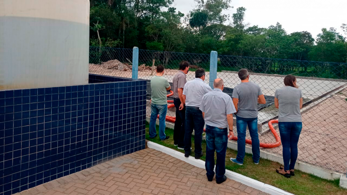 Na ETA Morro dos Conventos, à obra, que iniciou no final de julho e foi concluída há aproximadamente um mês. O local foi vistoriada na tarde desta quarta-feira, dia 3, por uma comitiva, cujos anfitriões eram o diretor geral, Jairo do Canto Costa; o Procurador Jurídico, Gean Soares de Souza; o engenheiro químico, Mário Copetti e o controlador interno, Álvaro Conceição, dos do SAMAE. A nova estrutura do local foi apresentada ao biólogo João Rosado e a engenheira ambiental, Patrícia Tambosi Reque, ambos representando a Fundação Ambiental do Município de Araranguá (FAMA). A dupla observou detalhes e conferiu o sistema operacional.