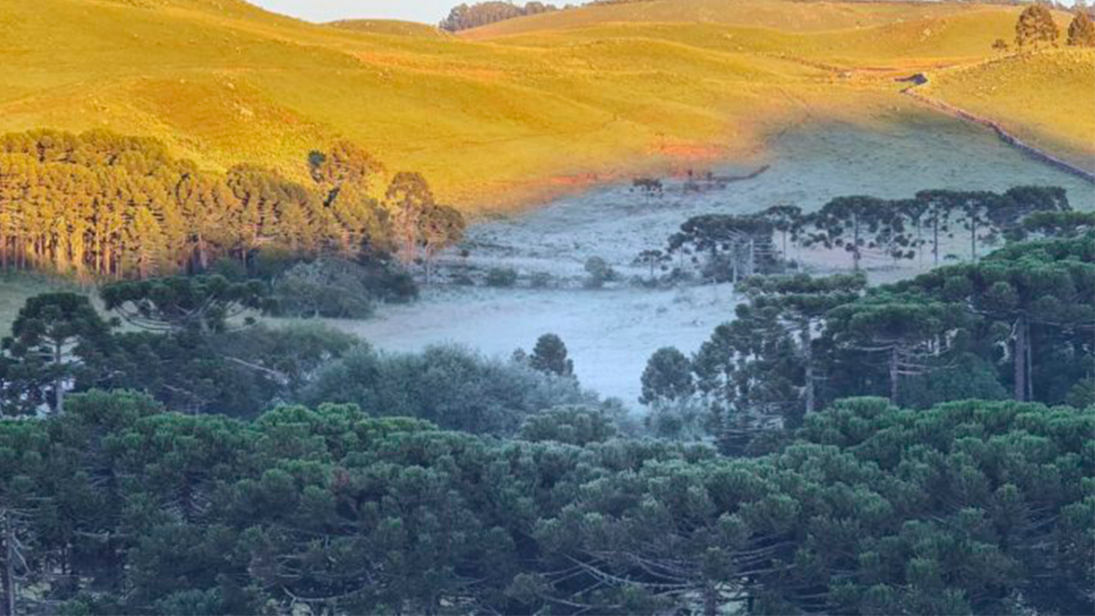 Em pleno verão, cidades da Serra catarinense registraram mais um amanhecer com campos encobertos de geada; Estado terá elevação nas temperaturas ao longo da tarde.