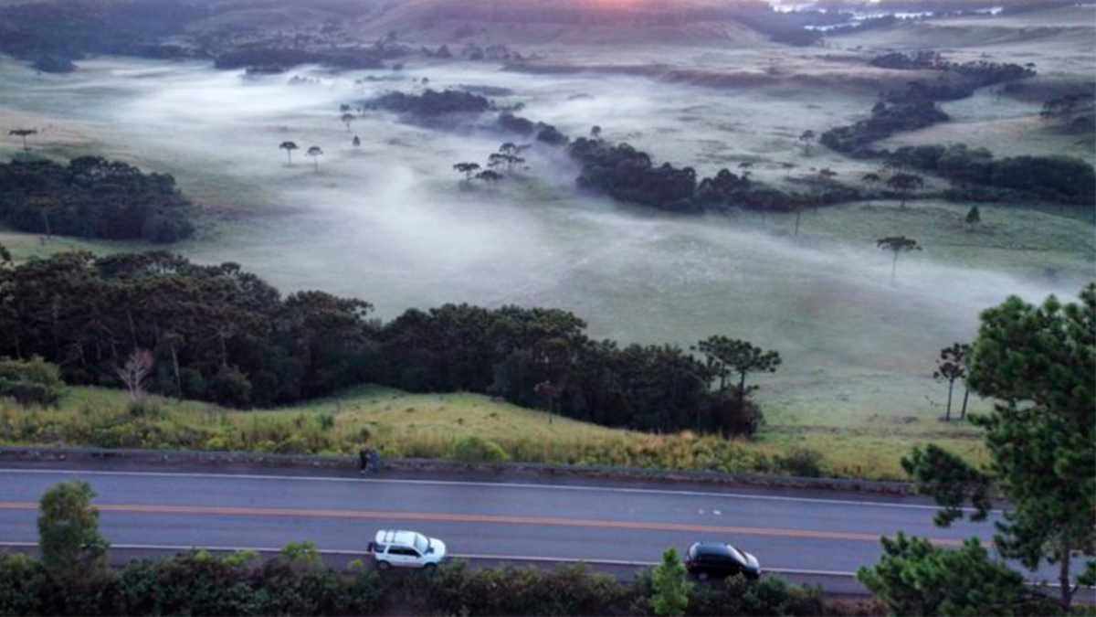 Campos amanheceram branquinhos em São Joaquim, na Serra catarinense, nesta terça-feira (8); veja previsão por regiões.