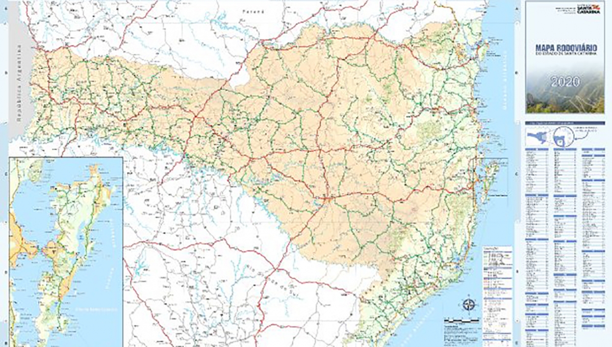 O Mapa Rodoviário do Estado de Santa Catarina 2020 está disponível para download no site da Secretaria de Estado da Infraestrutura e Mobilidade (SIE).