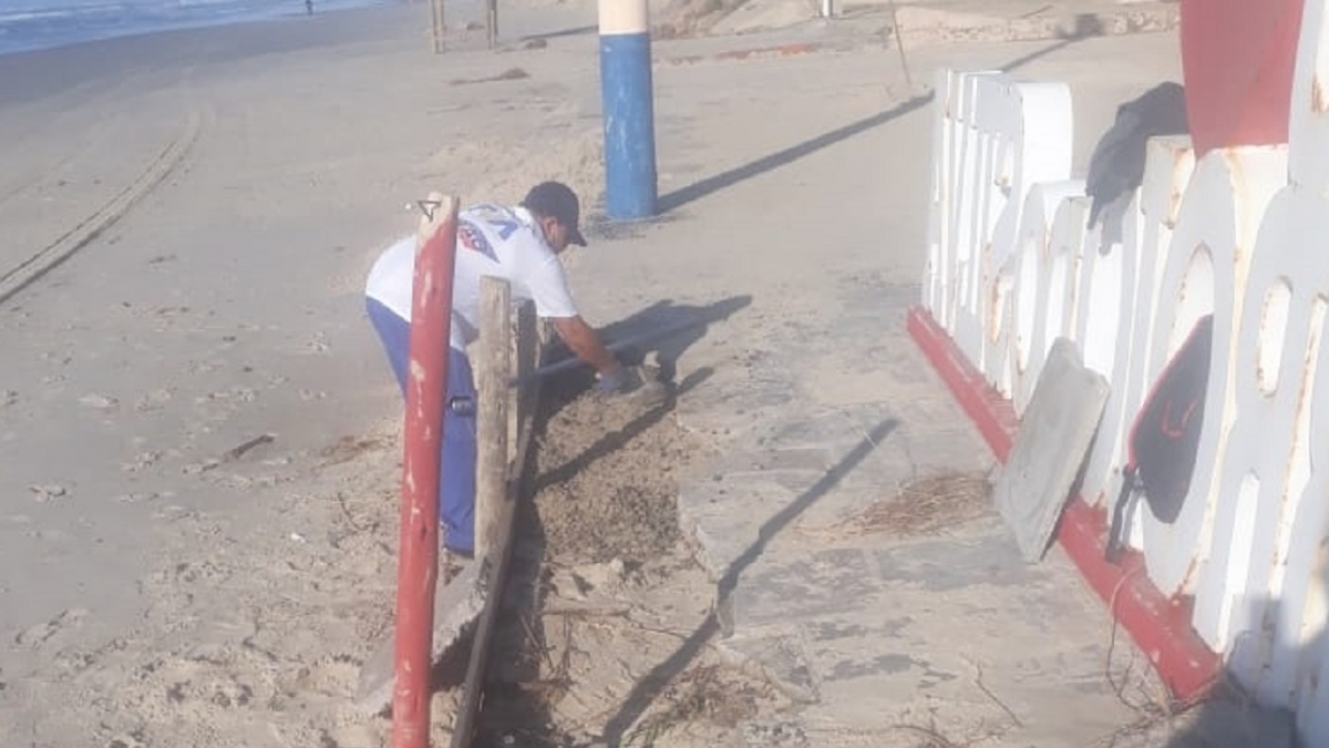 Em outra frente de trabalho, os servidores da secretaria de Obras atuaram na limpeza e reparos do Calçadão da Praça Central, que foi danificado pela ressaca do mar.